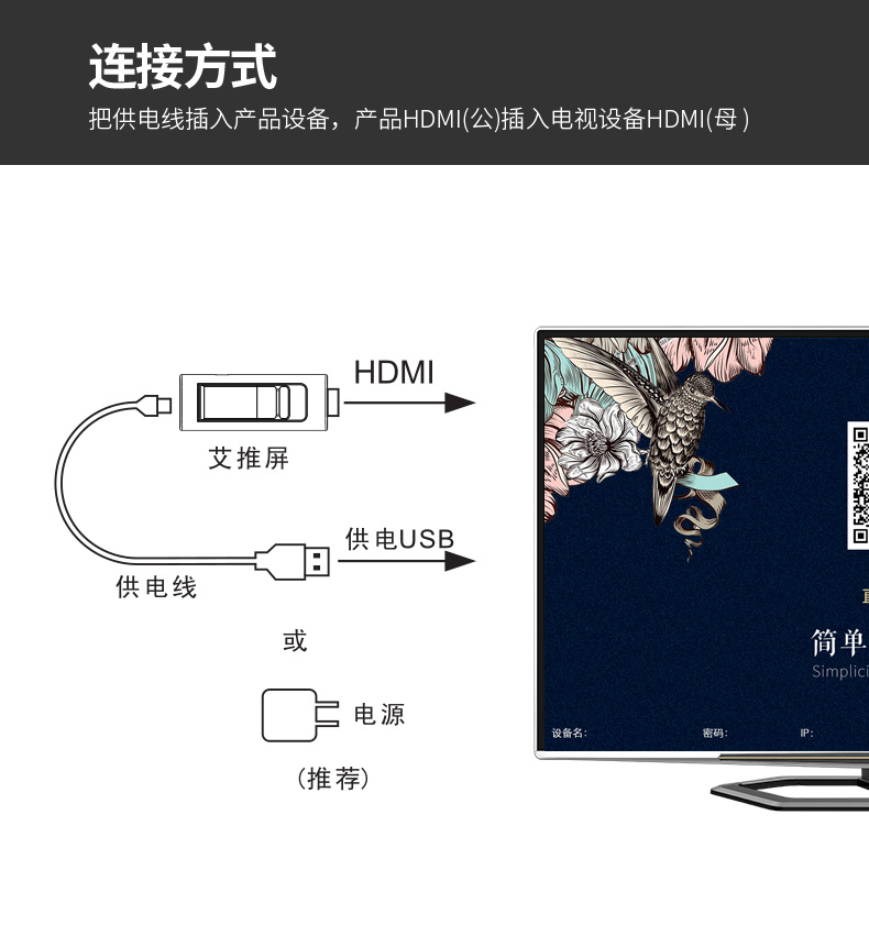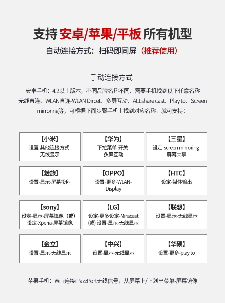 *它廣泛用于家庭娛樂(lè),商業(yè)PPT,教育和免費(fèi)分享您最喜愛(ài)的視頻或可愛(ài)的照片與您的家人和朋友只需將此iPazzPort Cast插入高清電視HDMI插座等。