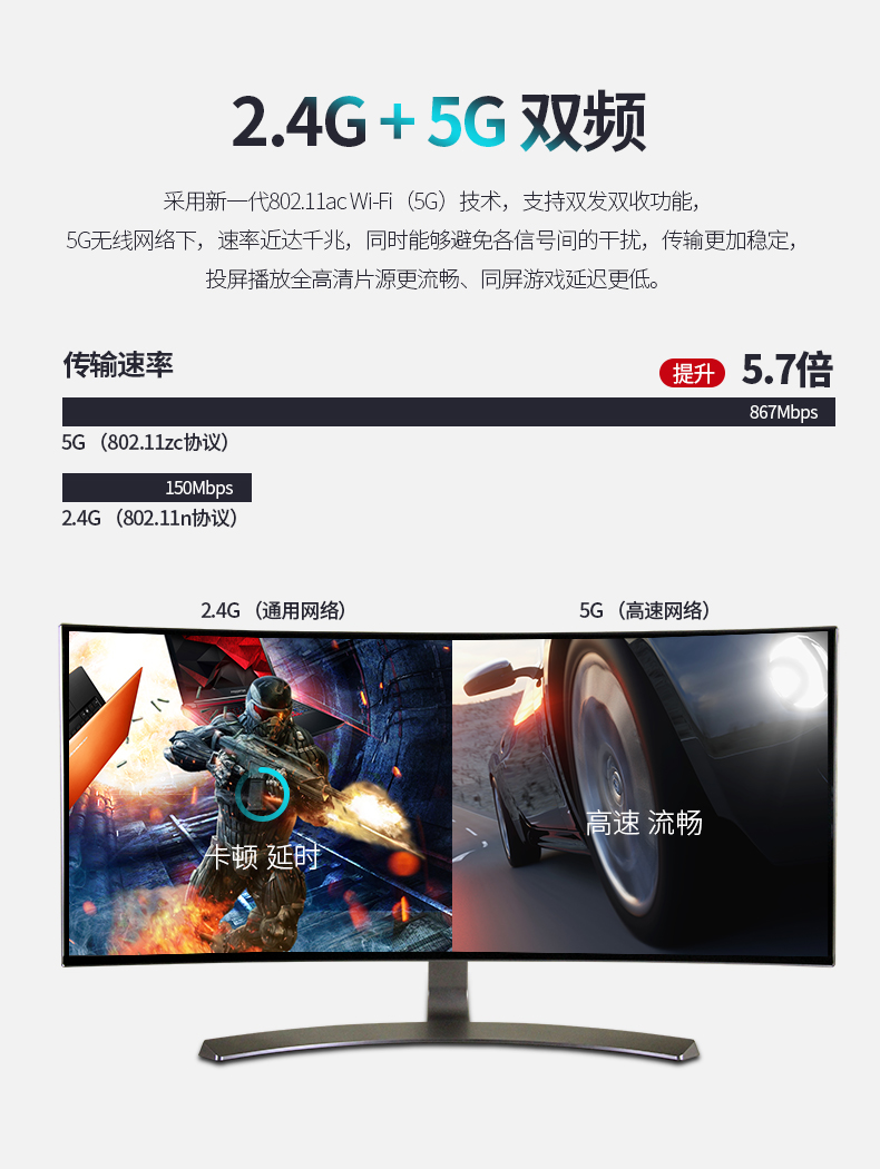 - 2.4G+ 5G 模式,雙模技術(shù)