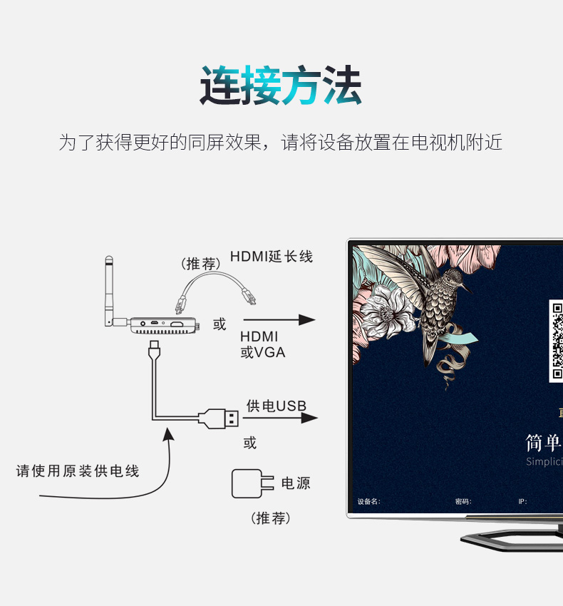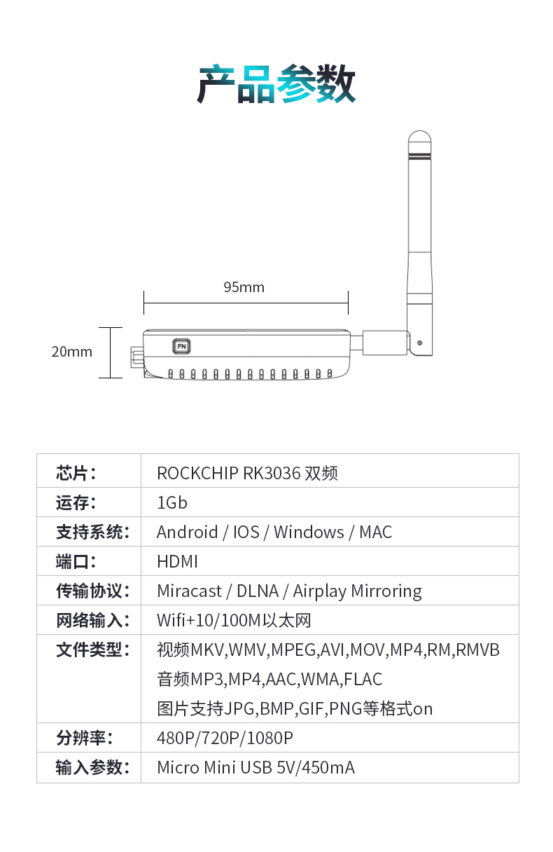 - HDMI+VGA 接口,可同時(shí)使用 - 3.5毫米音頻適配器,用于高保真語(yǔ)音 - 蜂巢消散孔 - 支持Miracast / DLNA / Airplay - 高品質(zhì)和無延遲顯示 - 在DLNA和Miracast之間單擊切換